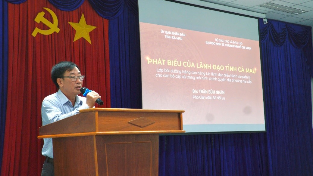 Phát biểu tại buổi lễ, đại diện Lãnh đạo tỉnh Cà Mau đã ghi nhận và đánh giá cao chất lượng đào tạo từ UEH, đồng thời biểu dương tinh thần học tập nghiêm túc của các học viên dù bận rộn với công tác chuyên môn. Ông khẳng định khóa bồi dưỡng đã hoàn thành xuất sắc các mục tiêu, tin tưởng các học viên sẽ vận dụng hiệu quả kiến thức đã học vào nhiệm vụ tại đơn vị. Đồng thời, ông bày tỏ mong muốn tiếp tục phối hợp cùng UEH để tổ chức thêm các lớp bồi dưỡng trong giai đoạn 2026 – 20230 nhằm nâng cao chất lượng đội ngũ cán bộ, công chức, viên chức của tỉnh Cà Mau, đáp ứng nhu cầu trong giai đoạn mới.